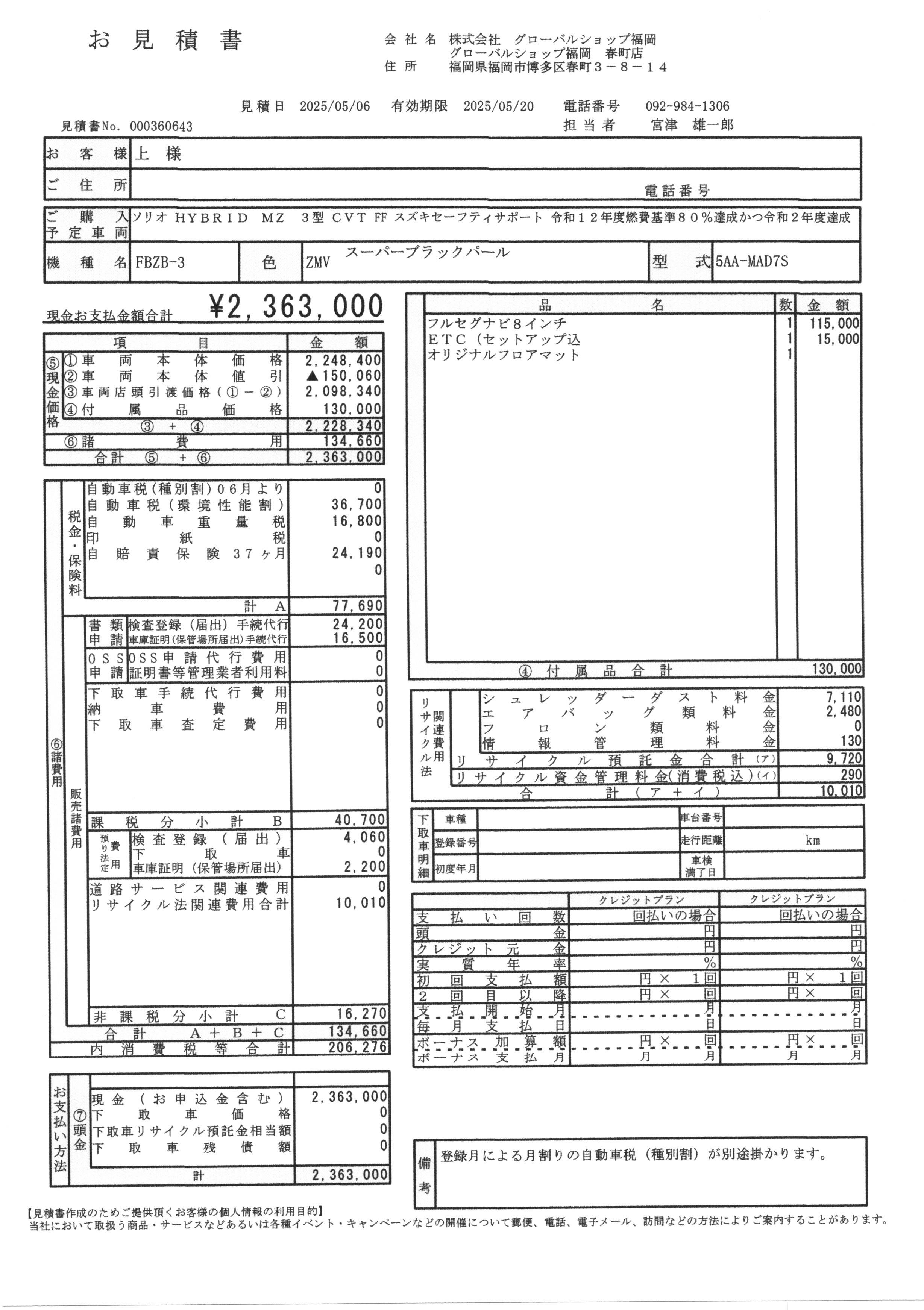 グローバルショップ福岡では、安心の『乗り出し総額価格』を表示!!